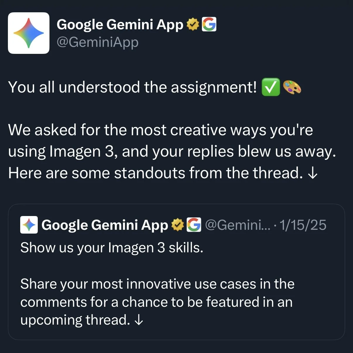 Community engagement tactic where we asked members to trial Gemini’s updated images generation capabilities and share their results for a chance to be featured (and elevated) by the Google Gemini channel